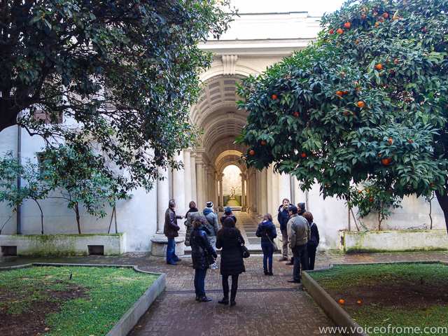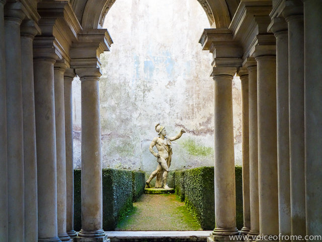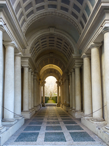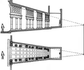 zwężający sie trapez, zmniejszają sie kolumny, wrażenie małego tunel