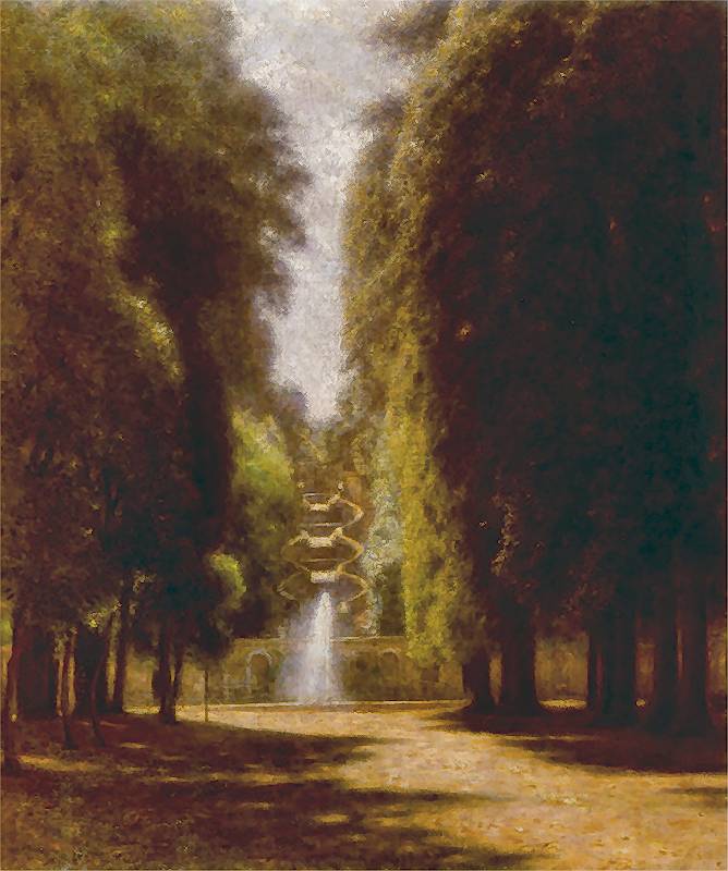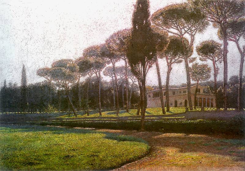 krajobraz z cyprysami, ogrody w tivioli, pinie,