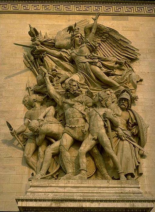 Marsylianka - Wymarsz ochotników w 1792,Marsylianka – alegoria pieśni, marsylianki, narodowej, bojowniczka wzywająca do walki, personifikacja marsylianki, 4 stany stylizowane na antycznych żołnierzy, dynamiczna, na łuku triumfalnym chaldrina