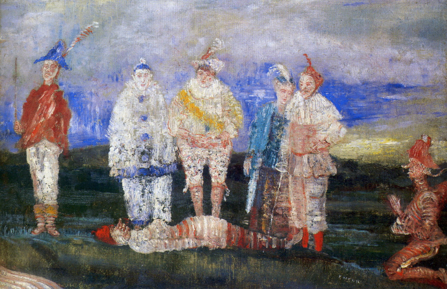 tytuły: pojedynek masek, maski patrzące na żółwia, autoportret wśród masek, maski skomfrontowane ze śmiercią, starsza pani z maskami, osobliwe maski/ James ensor – epspresjonista, motywy turpizmu, brzydoty, dekoracyjność