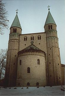 rozbudowana, umieszczona poprzecznie do nawy, zachodnia część bazyliki charakterystyczna dla architektury przedromańskiej.