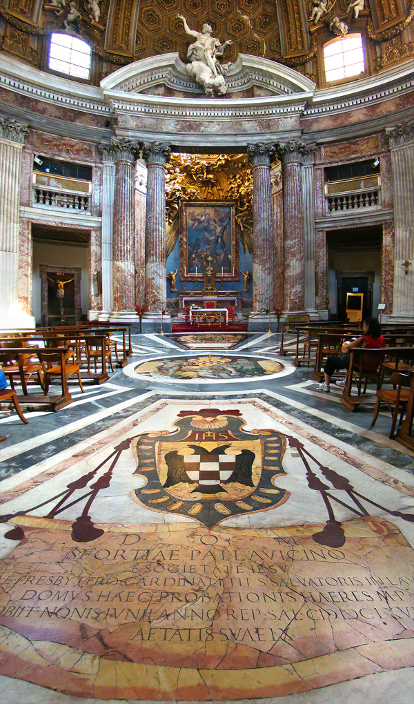 kościół jezuicki na zlecenie papieża Aleksandra VII kościoła na planie owalu, której krótsza oś stanowi główną oś kościoła, a ołtarz główny mieścił się na tej osi bryła budowli z kopułą niewielką kopułę przesklepiającą wnętrze kościoła Sant’Andrea al Quirinale wypełniają od wewnątrz pozłacane kasetony, co może pośrednio świadczyć o inspiracji kopułą antycznego Panteonu, a ściany wnętrza pokryto różnobarwnymi marmurami zbudowany na planie elipsy, fasada świątyni jest stosunkowo prosta, a jej charakter stylistyczny nosi nieznaczne znamiona klasycyzmu: dominującym elementem jest bowiem portyk na planie wypukłego półkola, którego zadaszenie podtrzymują dwie masywne kolumny jońskie o gładkich trzonach ponad portykiem umieszczono wielkie okno portal wejściowy ukryty w portyku ma kształt prostokąta i wieńczy go trójkątny naczółek cała fasada, opięta w narożach pilastrami została zwieńczona potężnym trójkątnym frontonem, oddzielonym wydatnym gzymsem kościół św. Andrzeja na Kwrynale) Rzym Gioivanni Bernini -1659-78 -kościół związany z nowicjatem Jezuitów -plan Owalu-nietypowy -fasada parawanowa, kształt aediculi -okrągły monopteros -owal otoczony wieńcem kaplic -architekt wychodzi przed budowę, projektuje otoczenie -prezbiterium to ażur z kolumnami -wnętrze dzieli pilastrami w wielkim porządku -podkreślenie wertykalizmu -wnętrze jest opowieścią, rodzaj teatru -rybacy z sieciami -scena ukrzyżowania -naczółek nad nawą ołtarza – Andrzej siedzi na obłoku sławy -latarnia -nad ołtarzami postacie pełzające po sklepieniu, oświetla je światło ze szczeliny plan kościoła Sant’Andrea al Quirinale Scala Regia Rzym Gianlorenzo Bernini -1663-66 -dojrzały barok -schody paradne -było to niekorzystne miejsce o planie trapezowatym -stanowi szybsze dojście -Bernini tworzy dzieło śmiałe i niezwykłe -udana praca -pokonał problemy z kompozycją i konstrukcją -schody biegną pod ciężkimi sklepieniami -pomnik cesarza Konstantego przykuwa wzrok, przyprowadza widza bliżej, na podest -wnętrze w kształcie gigantycznej kolumnady -gra światła, światło rozmywa, daje ruch (na końcu) -światło bliżej to światło ukryte (tnie schody na pół) – ściana światła -nad wejściem znajdują się famy na osi krótszej ołtarz, plan elipsy, kopuła również eliptyczna, monumentalne pilastry, prosty portyk, fasada parawanowa,