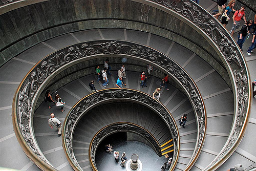 zwężający sie trapez, zmniejszają sie kolumny, wrażenie małego tunel