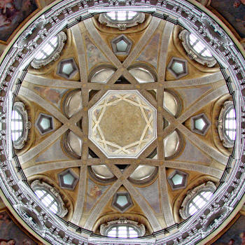 dojrzały barok -o architekcie: architekt nowego pokolenia, opiera się na architekturze Borominiego wyjątkowo dekoracyjny kościół -elewacje wypukłe, wklęsłe formy prezbiterium – owal -dużo dekoracji rzeźbiarskiej konstrukcja żebrowa czyli szkieletowa -kopuły przenika światło -kopuła nad nawą – ośmioramienna gwiazda -kopuła sześcioboczna nad prezbiterium -dużo ornamentów / plan 2 trójkątów, owalna, kopuła powtarzająca szkielet, żebra, motyw gwiazdy, kwiatu przenikającego sie z motywem światła