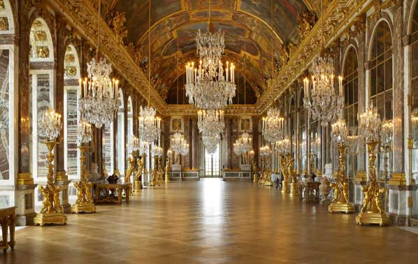 to serce Pałacu Wersalskiego i jego największy symbol galeria należy do Wielkich Apartamentów króla, miejsce spotkań i uroczystości, reprezentacji niektórzy nazywają ten pokój pokojem Ludwika XIV ze względu na jego wkład w dekoracje pomieszczenia na początku znajdowała się tu włoska terasa wzniesiona w 1670 roku, zamieniona na salę reprezentacyjną galeria dekorowana w latach 1678 -1684 w stylu francuskim pod nadzorem Mansarta - sala ma 74 metry długości i 10 metrów szerokości. główną cechą Galerii Zwierciadlanej jest 17 łuków lustrzanych odzwierciedlających 17 arkadowych okien, które wychodzą na ogród wersalski. Lustra odbijają światło padające z przeciwległych stron, tworząc o zmierzchu efekt gry promieni. Galeria Zwierciadlana usytuowana jest w południowo- zachodnim narożniku głównego korpusu pałacu i stanowi przejście do Salonu Wojny sklepienia Galerii zdobią malowidła Charlesa Le Bruna przedstawiające alegoryczne sceny z wydarzeń za panowania Ludwika XIV, zwycięstw wojennych, reform gospodarczych i administracyjnych w 1919 roku gdy kończyła się pierwsza wojna światowa Niemcy podpisali w tej sali Traktat Wersalski