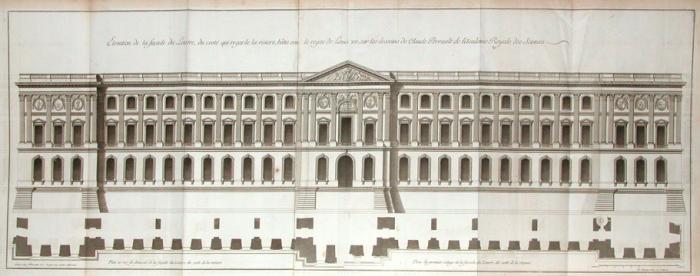 Luwr został zbudowany w 1190 roku przez Filipa II Augusta jako zamek obronny będący jednocześnie zabezpieczeniem części murów okalających miasto Paryż Do XVII wieku Luwr był przebudowywany i przekształcany zgodnie z gustem i potrzebami kolejnych władców. Franciszek I nakazał rozebranie potężnych umocnień i przebudowę pałacu zgodnie z modą renesansową, a wygląd Luwru z tamtych czasów znamy z miniatury w Bardzo bogatych godzinkach księcia de Berry w XVII wieku Ludwik XIV przeniósł siedzibę królewską do Wersalu, a Luwr przestał pełnić rolę królewskiej rezydencji Od tej pory Luwr stał się siedzibą artystów, a od XVIII wieku Królewska Akademia Malarstwa i Rzeźby, która weszła w skład Akademii Francuskiej zaczęła organizować wystawy artystyczne, popularnie nazywane Salonami Luwr, który był symbolem ciągłości monarchii francuskiej, z założenia miał być czteroskrzydłowym zamkiem i był modernizowany niemal przez cały okres panowania Ludwika XIV. wschodnia fasada to doskonały przykład francuskiego klasycyzmu nawiązywała do antyku i renesansu Perrault nie zrezygnował z zaproponowanej przez Berniniego kolumnady, ale nadał jej klasyczny rygor. Podzielił fasadę na pięć pionowych części. Tworzą je symetrycznie rozłożone, trzy wysunięte przed lico ściany od fundamentu po dach po środku i po bokach, tak zwane ryzality oraz dwie ściany umieszczone między nimi i lekko cofnięte w głąb. Podział poziomy na dwie kondygnacje, wyznacza pozioma linia gzymsu międzykondygnacyjnego. przyziemie o gładko murowanym licu oś środkową Perrault zaznaczył wysuniętym przed lico ryzalitem o sakralnym charakterze, umieszczając nad nim na belkowaniu trójkątny przyczółek. W jego polu, nad głównym wejściem znajduje się trójkątne pole tympanonu - kamienna część pokryta płaskorzeźbą przedstawiająca Wiktorię na kwadrydze (tu także antyczne nawiązanie) dominantą projektu jest kolumnada biegnąca przez całą szerokość fasady poza bocznymi ryzalitami. Smukłe kolumny o korynckich kapitelach zostały ustawione w parach: cztery pary w części frontalnej oraz po sześć par w dwóch częściach bocznych. Pojedyncze kolumny rozdzielają poszczególne części fasady i znajdują się pomiędzy frontonem i ścianami bocznymi oraz pomiędzy ścianami bocznymi i ryzalitami okna w części przyziemia są prostokątne, zwieńczone półkoliście. Okna w części górnej, ujęte parami kolumn zostały zwieńczone trójkątnymi przyczółkami przez całą szerokość fasady nad gzymsem biegnie attyka, niewysoka balustrada wieńcząca budynek i zasłaniająca płaski dach, który znalazł się także w projekcie Berniniego. Projekt Perraulta to nawiązanie do klasyki, fasada jest pełna powagi, dostojna, bardzo elegancka w swojej prostocie i monumentalności.