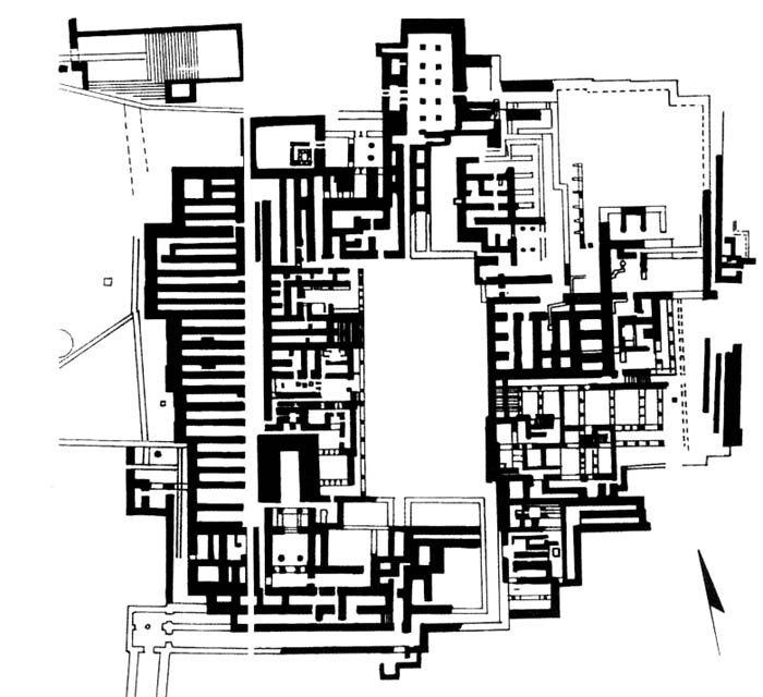 Fragment ruin pałacu (tzw. wschodnie wejście) zostało odkryte w 1878 roku (jedno zdj to rekonstrukcja)