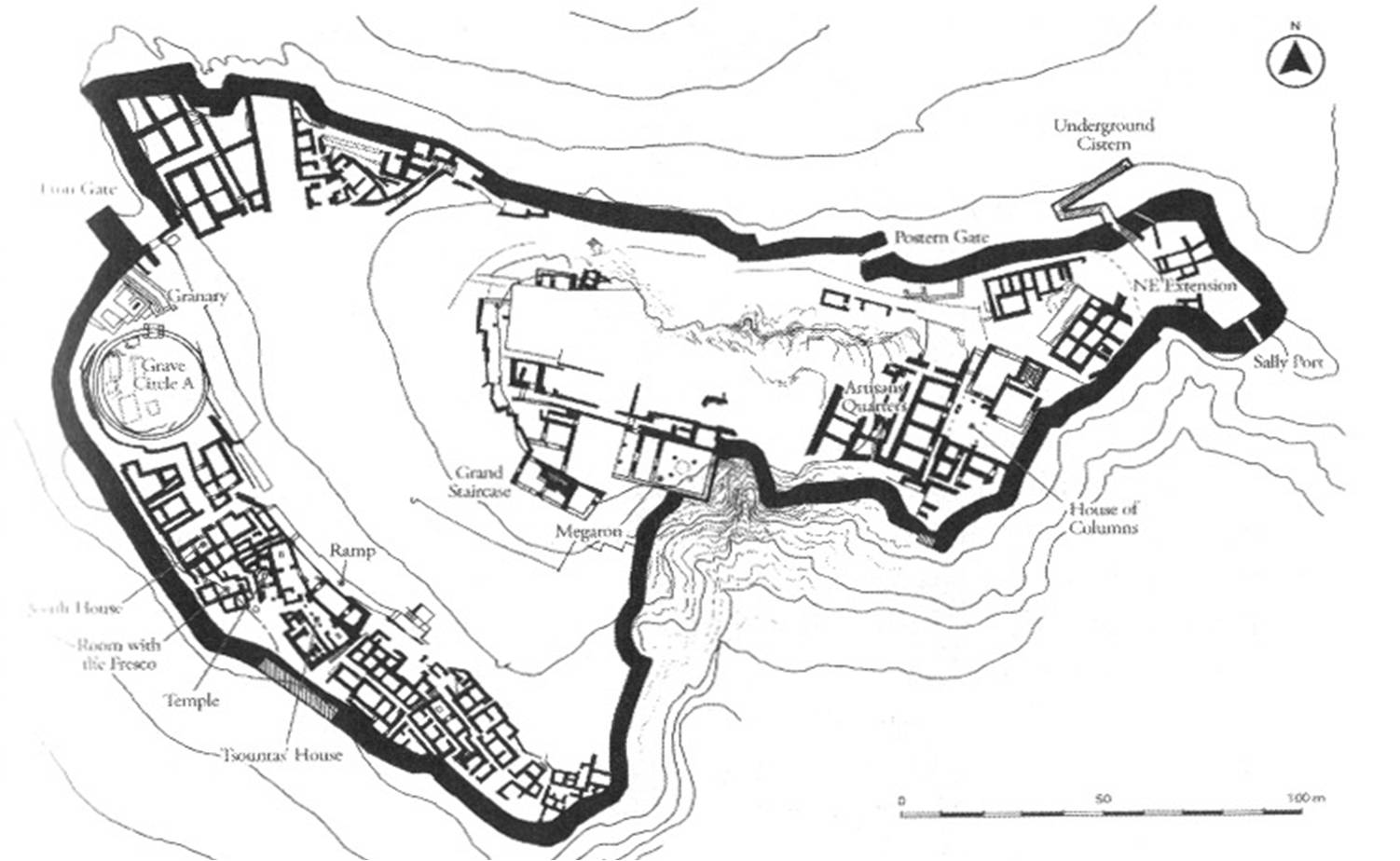 Inaczej pałac w Mykenach. Okres największego rozwoju cytadeli to lata 1400-1100 p.n.e. Plan cytadeli przypomina kształtem trójkąt.