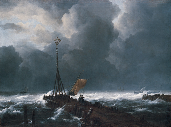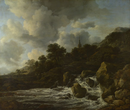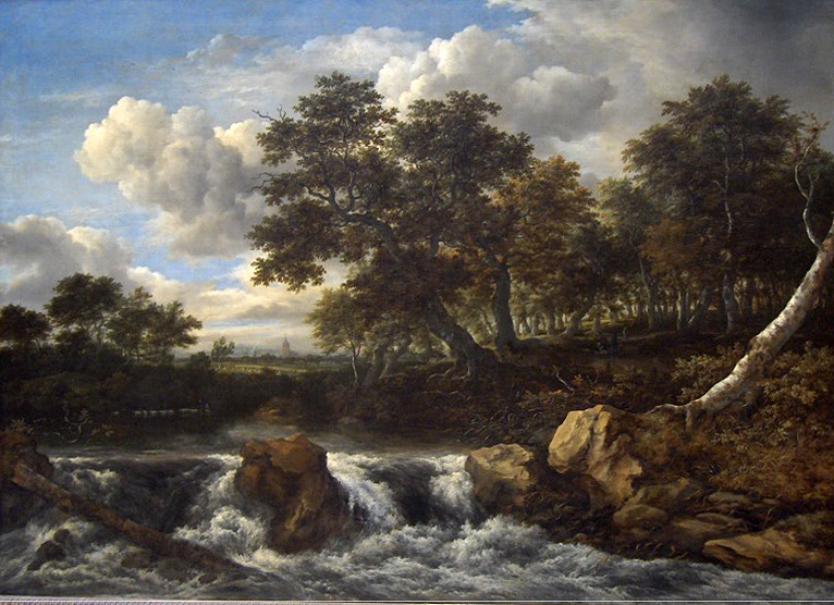 krajobraz nad wodospadem, sztorm, wido Haarlem, pejzaż zimowy, krajobraz z kościołem i wioską, zimowy krajobraz