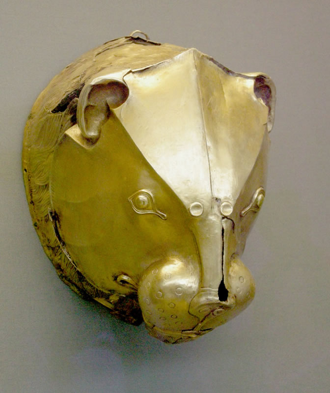 złoty ryton w kształcie głowy lwa, krąg grobowy