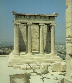 niewielka świątynia w typie attycko-jońskiego tetrastylosu na Akropolu, na prawo od Propylejów, w południowo-zachodniej części wzgórza. Świątynię postawiono w V w p.n.e., choć jej zalążki sięgają okresu archaicznego. Projektantem był prawdopodobnie Kallikrates. Oddawano tam kult Atenie Zwycięskiej. Najlepiej zachowana świątynia jońska, trzykrotnie rekonstruowana