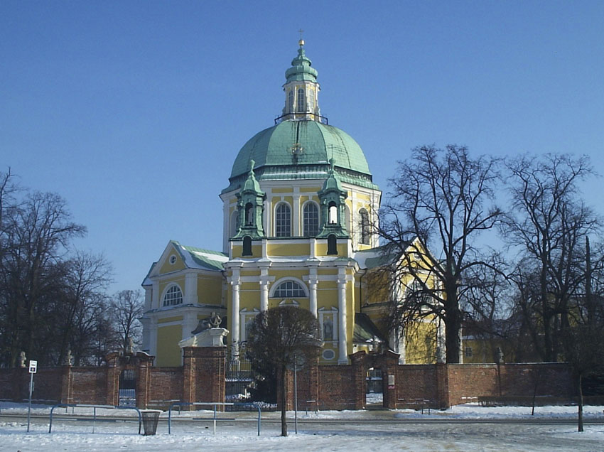 Polska wersja santa maria della salute, motywy portyków prezbiterium na planie kwadratu