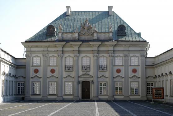 późnobarokowy pałac znajdujący się u podnóża Zamku Królewskiego w Warszawie./ styl francuski z dachem mancartowym