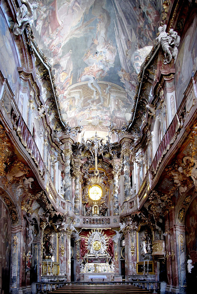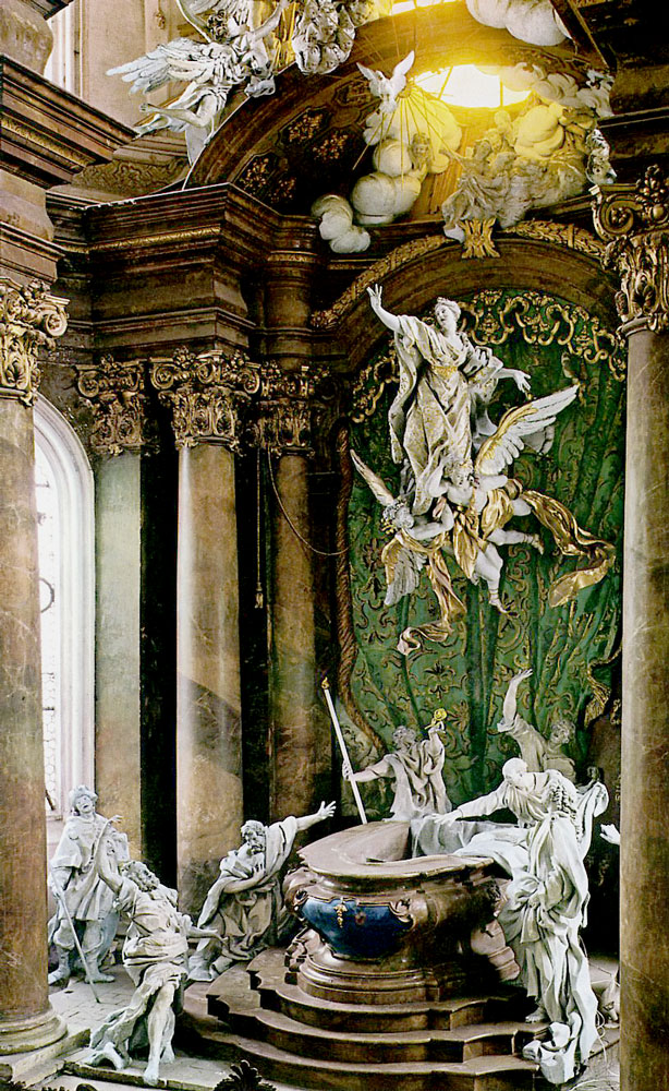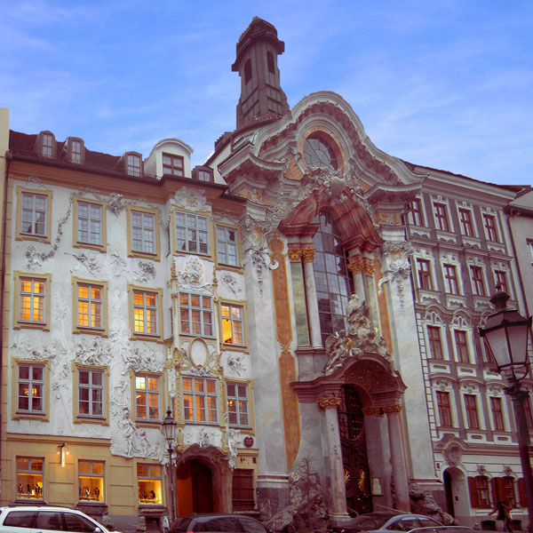 wciśnięty pomiędzy kamienice, wertykalne, fasada – niespokojna, prowadzona po falistej formie, mięsiste, jednoosiowa, wejście w postaci portyku zwieńczone trójkondygnacyjność zwieńczenie portyku przyczółkiem prowadzonego po łuku, jednonawowy z niszami z kaplicami. Wnętrze -bogate zdobnictwo, plafon i bogato zdobiony ołtarz