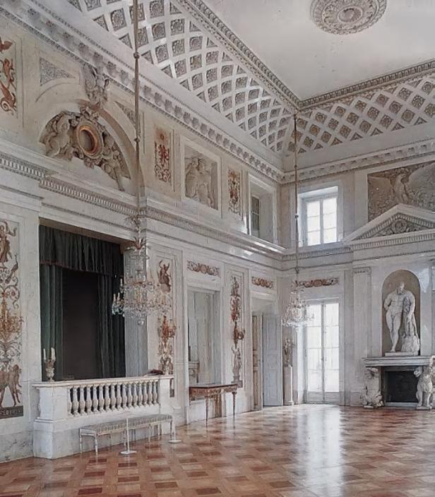 wpływ malarstwa pompejańskiego – biała sala na łazienkach, rzeźba sławy (?)