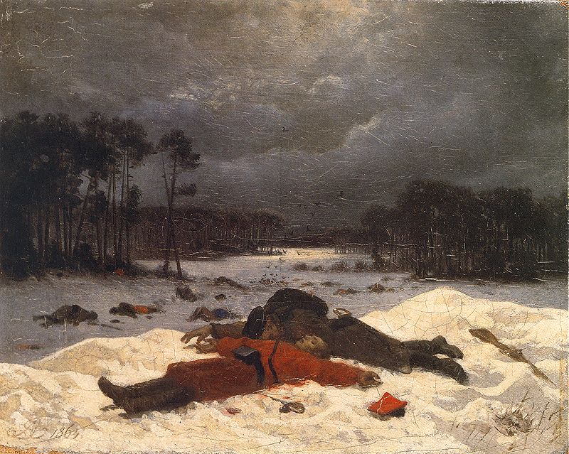 Obraz "Pojednanie" Artura Grottgera przedstawia pobojowisko po bitwie w czasie powstania styczniowego. W centrum obok siebie leżą ciała poległego powstańca i rosyjskiego żołnierza.