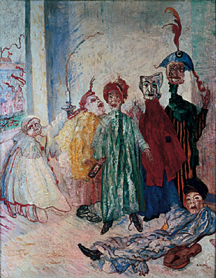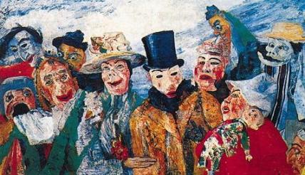 intryga, szkielety wyszarpujące sobie solonego śledzia, wielka parada/belgijski malarz, grafik, pisarz i kompozytor. Uważany jest za prekursora ekspresjonizmu. James Ensor (2013) przez belgijskiego malarza Willy Bosschem Wjazd Chrystusa do Brukseli Z wyjątkiem trzech lat studiów (1877–80, historia i malarstwo religijne[1]) w Akademii Sztuk Pięknych w Brukseli, całe życie spędził w swoim rodzinnym mieście, Ostendzie. Początkowo malował pejzaże, wnętrza, martwe natury i portrety realistyczne, utrzymane w ciemnej kolorystyce, którą rozjaśnił pod wpływem impresjonizmu. Zajmował się również grafiką – tworzył akwaforty i litografie. Około 1885 roku rozwinął swój własny, groteskowy styl. Wprowadzał do swoich dzieł elementy symboliczne i fantastyczne (często obok wątków realistycznych przedstawia np. widma, maski karnawałowe i szkielety). Wiele jego dzieł ma charakter satyryczny. Jest także autorem dzieł muzycznych i literackich.