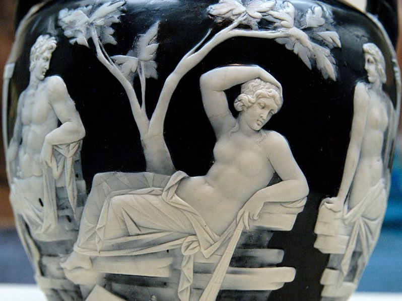 datowana na końcówkę I wieku p.n.e. lub początek I wieku n.e. waza wykonana z warstwowego szkła kameowego w kolorach niebieskim i białym, ozdobiona reliefami ze scenami figuralnymi[1][2]. Obecnie znajduje się w zbiorach British Museum. Naczynie ma postać amfory o wysokości 24,5 cm i średnicy 17,7 cm. Po bokach posiada dwa uchwyty[3]. Jej zewnętrzną powierzchnię zdobią dwie sceny figuralne z siedmioma postaciami. Pierwsza z nich przedstawia wychodzącego spomiędzy kolumnady młodzieńca, idącego ku siedzącej na ziemi kobiecie, wyciągającej rękę w jego stronę. Kobieta trzyma między kolanami węża, nad nią unosi się zaś kupidyn z łukiem i pochodnią. Całej sytuacji przygląda się stojący po prawej brodaty mężczyzna. Druga scena ukazuje siedzących na stosach kamieni mężczyznę i dwie kobiety, z których jedna trzyma laskę[4]. Na temat interpretacji przedstawionych postaci wysunięto szereg teorii, dopatrywano się w nich m.in. Peleusa i Tetydy, Achillesa i Heleny lub Dejdamii[3], a także apoteozy cesarza Augusta[1]. Dno wazy, na którym przedstawiono postać męską (zdaniem niektórych Parysa, stąd interpretacja jakoby relief przedstawiał sąd Parysa) nie jest oryginalne, zostało dodane podczas naprawy w starożytności lub już po odnalezieniu zabytku w czasach nowożytnych