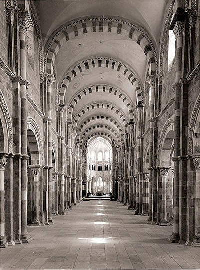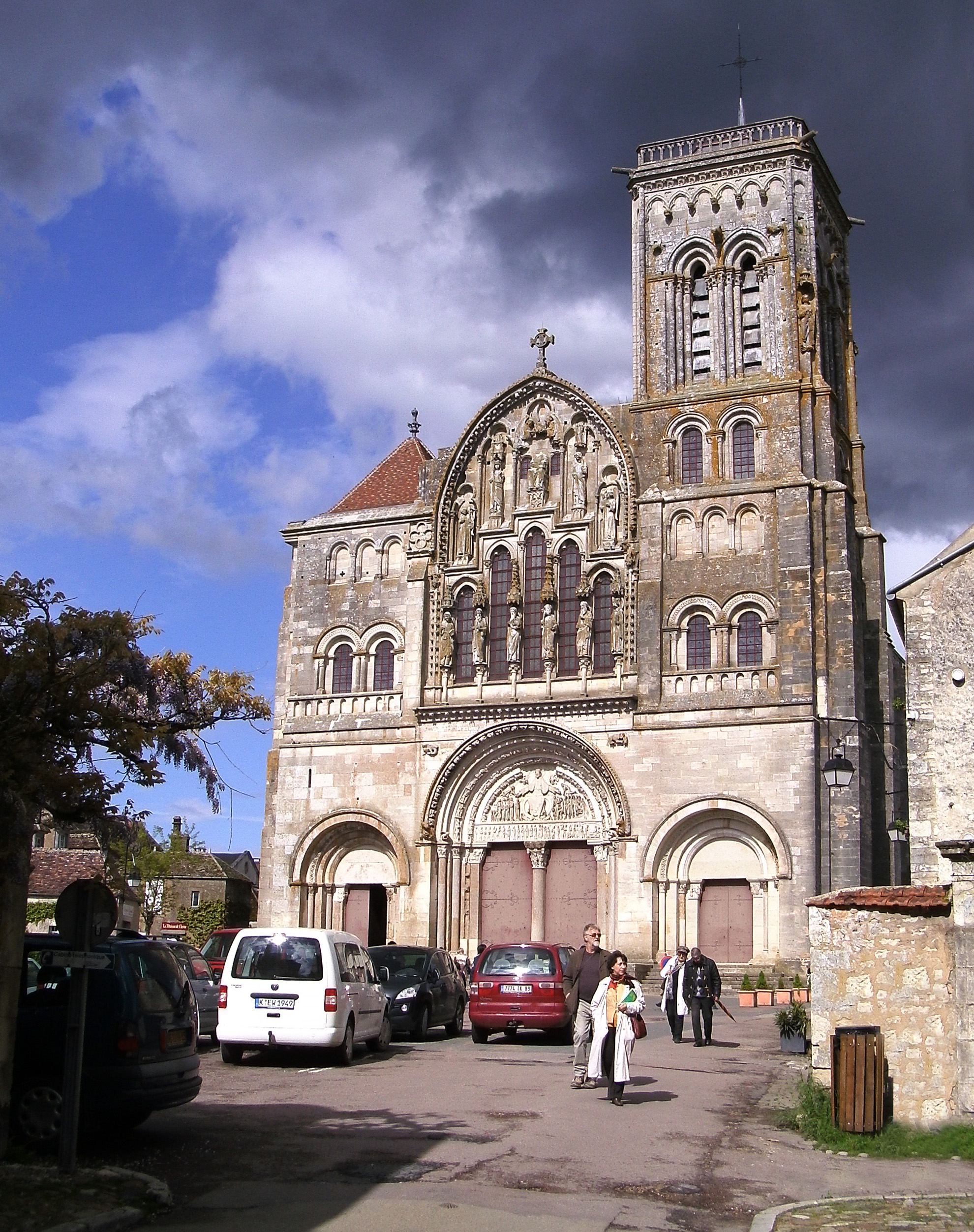 - XII-wieczne opactwo benedyktyńskie w Vézelay - dwa style architektoniczne - Część zachodnia (narteks i nawa) wzniesiona została w stylu romańskim, natomiast wschodnia (transept i prezbiterium) w gotyckim. - portal ikonograficzny ( w tym scena zesłania Ducha Świętego)