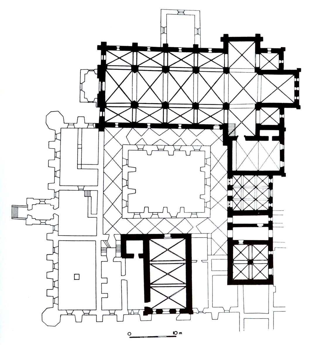 - XII wiek - bazylika z kwadratowym prezbiterium, transeptem, sklepieniem krzyżowym - wirydarz ( ogród) - kapitularz (miejsce spotkania wielkiej kapituły) - refektarz - jadalnia - dormitorium - sypialnia - skryptorium - miejsce pisania skrypt - lavatorium - łaźnia