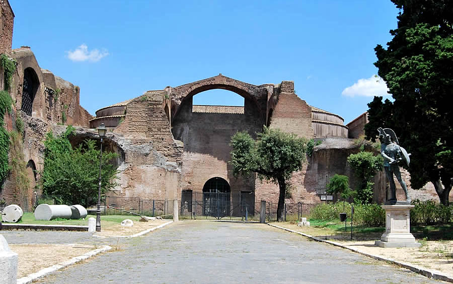 - niezachowany do czasów współczesnych wielki kompleks łaźni publicznych w Rzymie.