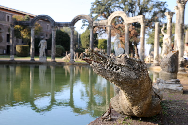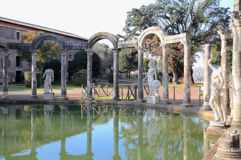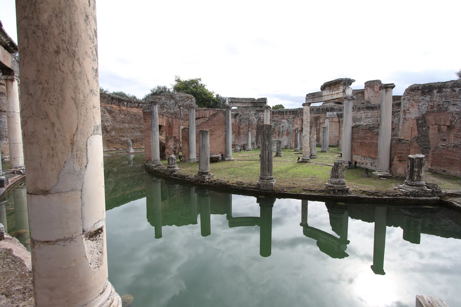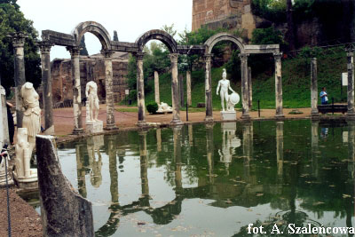 - 3 dziedzińce (Dziedzińca Bibliotek, Dziedzińca Wielkiego i Złotego Placu) - Przy Dziedzińcu Bibliotek zlokalizowano budynki biblioteki greckiej i łacińskiej, szpitala oraz Teatru Morskiego i Sali Filozofów. Na dziedzińcu znajdowała się duża prostokątna fontanna. -Kanał otoczony był portykiem z jońskimi kolumnami. Otacza ją wąski kanał, przez który przerzucono dwa mostki - Zabudowania zwane Casino, Stadion-Ogród i Pałac Zimowy tworzyły kompleks rozplanowany na rzucie krzyża, w którym znajdowały się pomieszczenia identyfikowane z planem starożytnych domów. Casino otoczone było półkolistymi portykami i łączyło się z poprzecznie położonymi zabudowaniami tzw. Stadionu (był to ogród w kształcie stadionu). Ogród podzielono na trzy dziedzińce. W części północno-wschodniej, łączącej się z Salą Filozofów nadal zachowały się fragmenty bogatej mozaiki i fresków. - Do budynku Casino przylegają Małe Termy. - W części centralnej znajdują się także westybul – budynek, z którego utwardzone drogi prowadziły do różnych części zabudowań Willi, pomieszczenie straży – mały murowany obiekt z galeryjką dostępną z drewnianych schodów oraz Kanopos. - Wielkie Termy zostały wybudowane w pobliżu Małych Term. Architektonicznie, układ pomieszczeń obu budynków jest do siebie podobny. Największe różnice wynikają z zastosowanych materiałów wykończeniowych. Wielkie Termy mają geometryczne, czarno-białe mozaiki stosowane w pomieszczeniach przeznaczonych urzędników i wyższych rangą służących. - zabudowania obiektu zwanego Roccabruna. Na jej dachu umieszczony jest niewielki pawilon – belweder, z którego rozciąga się widok na cały kompleks Willi oraz pobliskie Tivoli. Wśród obiektów tej części znajdują się także zabudowania świątyni Apolla, Plutona, Mauzoleum, Akademii, Teatru Odeon oraz pozostałości akweduktu doprowadzającego wodę do Willi.
