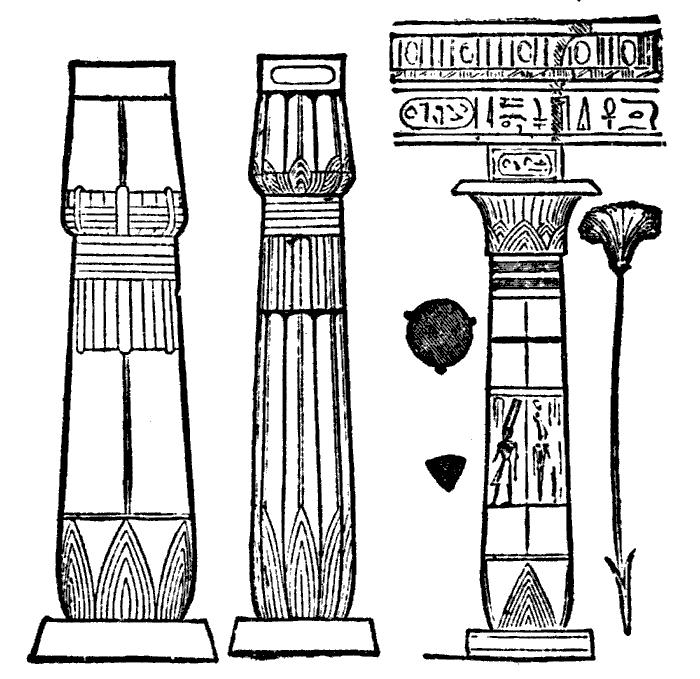 kolumny egipskie. baza, trzon, kapitel w formie wiązki