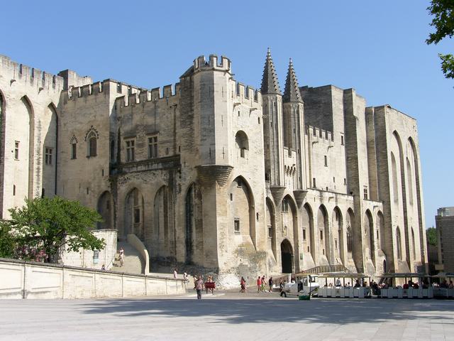 - dawna rezydencja papieży wzniesiona w XIV wieku w okresie niewoli awiniońskiej, kiedy to w latach 1309–1377 Awinion pełnił tymczasowo rolę Stolicy Apostolskiej. Liczący ponad 15 000 m² powierzchni wszystkich pomieszczeń pałac do dziś należy do największych gotyckich założeń zamkowych w Europie. Wraz z katedrą Notre-Dame, która przylega do rezydencji od strony zachodniej tworzy monumentalny kompleks architektoniczny, którego dopełnieniem jest częściowo zachowany most Pont Saint-Bénézet na rzece Rodan. Wszystkie te obiekty zostały wpisane na Listę Światowego Dziedzictwa UNESCO.