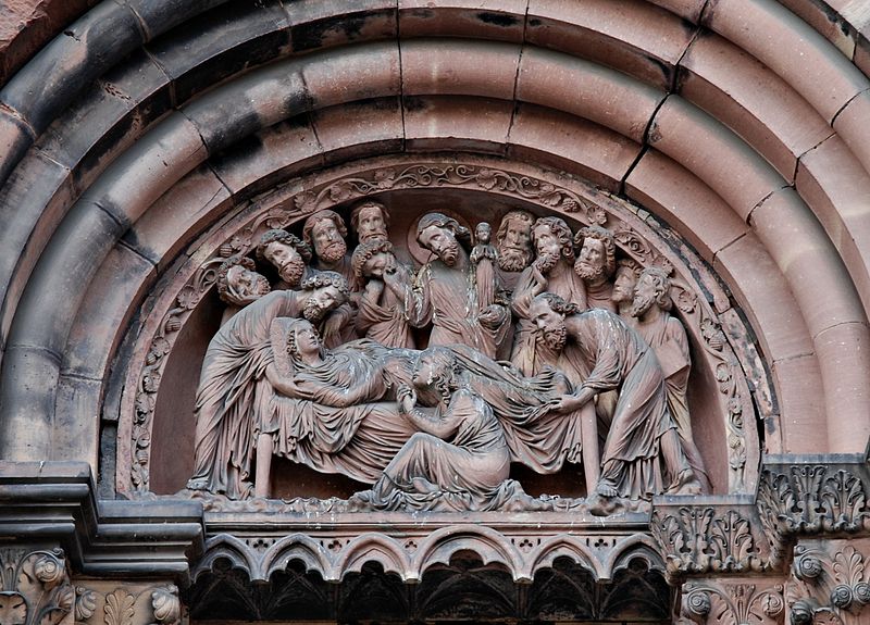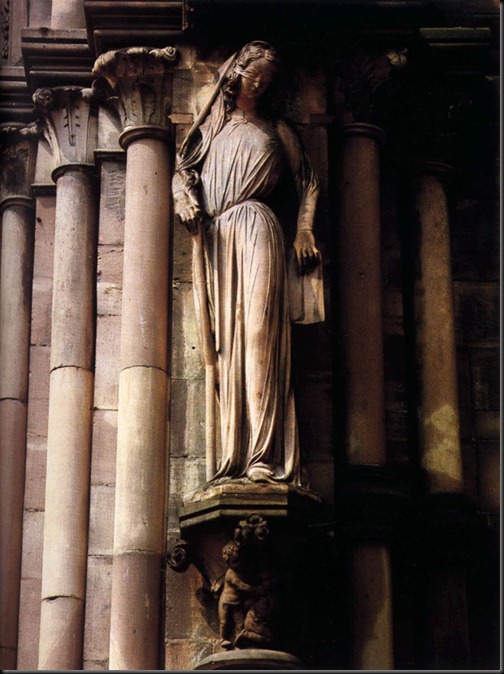 - eklezja i synagoga ( 2 rzeźby kobiet) - kontrapost postaci - wykwintność szat - zaśnięcie Marii Panny (portal) -