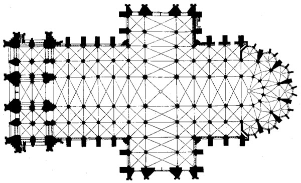 -XIII wiek - w całości z kamienia prezbiterium wraz z ambitem i wieńcem kaplic, proporcje oraz diafaniczność (przezroczystość konstrukcji) - plan krzyża łacińskiego - orientowana 5 nawowa bazylika - korpusie nawowym nawiązuje do układu przestrzennego średniowiecznego kościoła pielgrzymkowego. - krucyfiks Gerona (po stronie północnej) oraz Madonna Mediolańska (po stronie południowej) - klarownością i niemal w pełni uporządkowanymi proporcjami - czteroprzęsłowe prezbiterium, - Okna obramione są wimpergami ze ślepymi maswerkami z motywami liściastych masek. Koronę murów wieńczą maswerkowe balustrady z fialami. - Lwia część dzieł nowożytnych została usunięta w ramach całkowitej regotycyzacji katedry, niektóre m.in. ołtarze Św. Klary i Świętych Patronów Kolonii są dziełami umieszczonymi w katedrze wtórnie, pochodzą głównie z nieistniejących już świątyń w Kolonii.