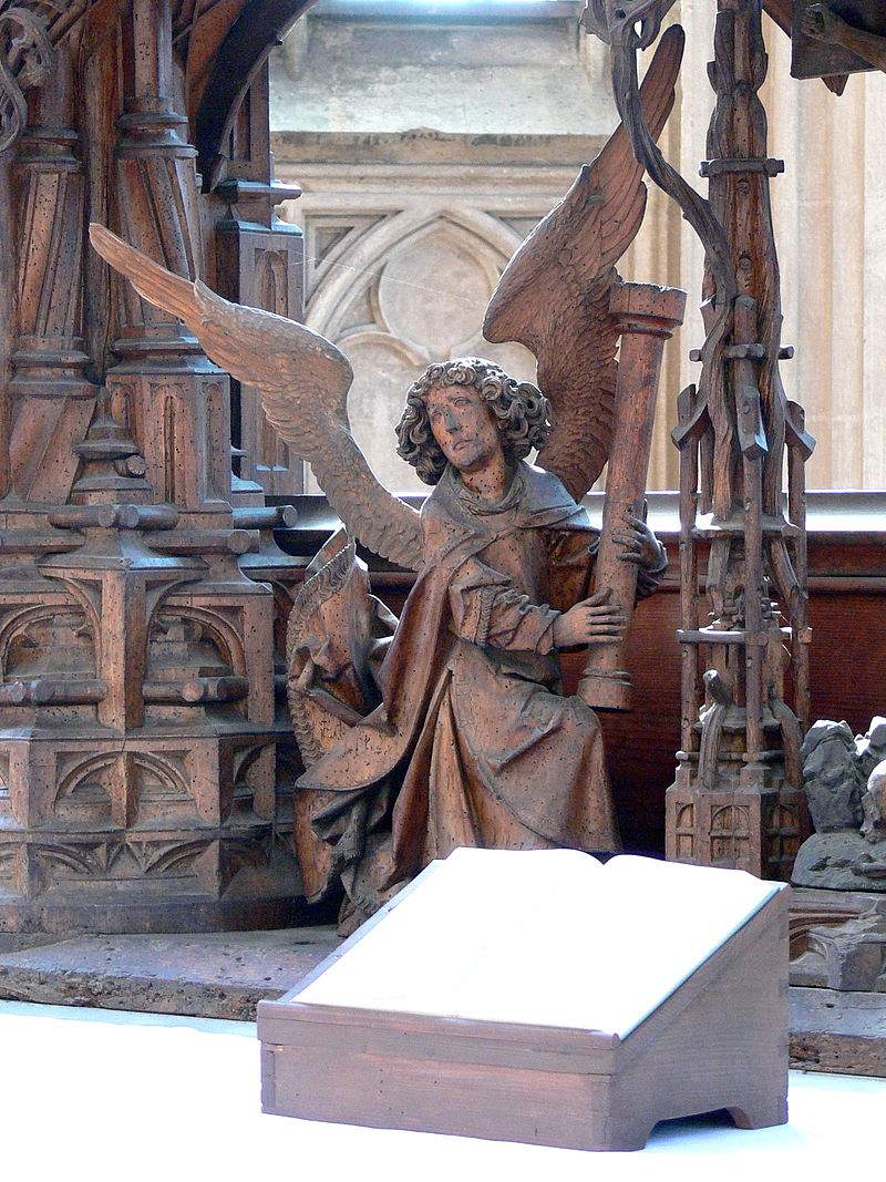 - anioł z predelli - tryptyk - fragment modlitwy w ogrojcu - początek XVI wieku - pasja Chrystusa -Ostatnia Wieczerza - brak polichromii, dekoracja maswerkowa