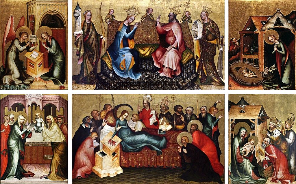 (przełom XIV i XV wieku) - czechy 1400 rok, pentaptyk, malarstwo temperowe na desce, tem maryjna, połączenie z pasją i scen życia Marii, podobieństwo do ołtarza mariackiego, wydłużenie postaci, idealizacja,