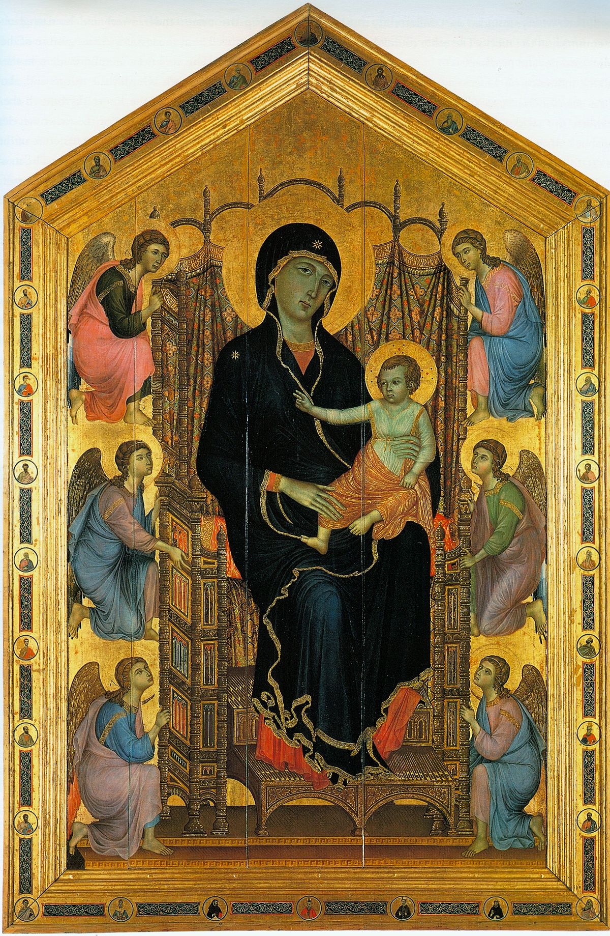 - obraz ołtarzowy. Obraz tronującej Matki Boskiej zawieszono w kaplicy św. Grzegorza, a potem w kaplicy Ruccellai. - 1285r - tempera na desce - galeria Uffizzi