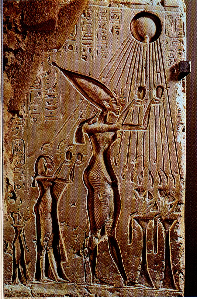 płaskorzeźba. czas powstania: XIV w.pne władca starożytnego Egiptu (faraon) z XVIII dynastii, syn Amenhotepa III i królowej Teje. Źródła podają rozbieżne daty jego urodzenia, objęcia rządów i śmierci, m.in: 1375–1358 p.n.e. lub 1379–1367–1350 p.n.e., lub 1351–1334 p.n.e. Jego główną żoną była Nefertiti, a inną Taduhepa.
