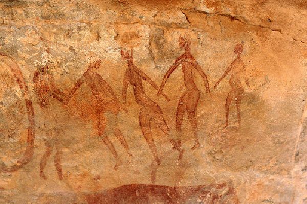 Czas powstania: neolit, 16 000 - 15 000 lat p.n.e. Miejsce przechowywania: - Inne informacje: Tasili Wan Ahdżar to pasmo górskie na Saharze w południowo-wschodniej Algierii o długości około 500 km. Malowidła przedstawiają stada bydła, duże dzikie zwierzęta, (m.i. krokodyle) i ludzi w polowaniu oraz tańcu. Kobiety. owce, psy. Znajdują się też liczne ryty.