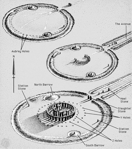 pochodząca z epok neolitu i brązu - Stonehenge składa się z kolejnych elementów, ustawianych w dużych odstępach czasowych (sanktuarium powstawało stopniowo, przez ponad tysiąc lat). Aleja wiodąca do Stonehenge ciągnie się na długości około 3 km i jest szeroka na 11 m