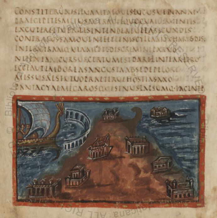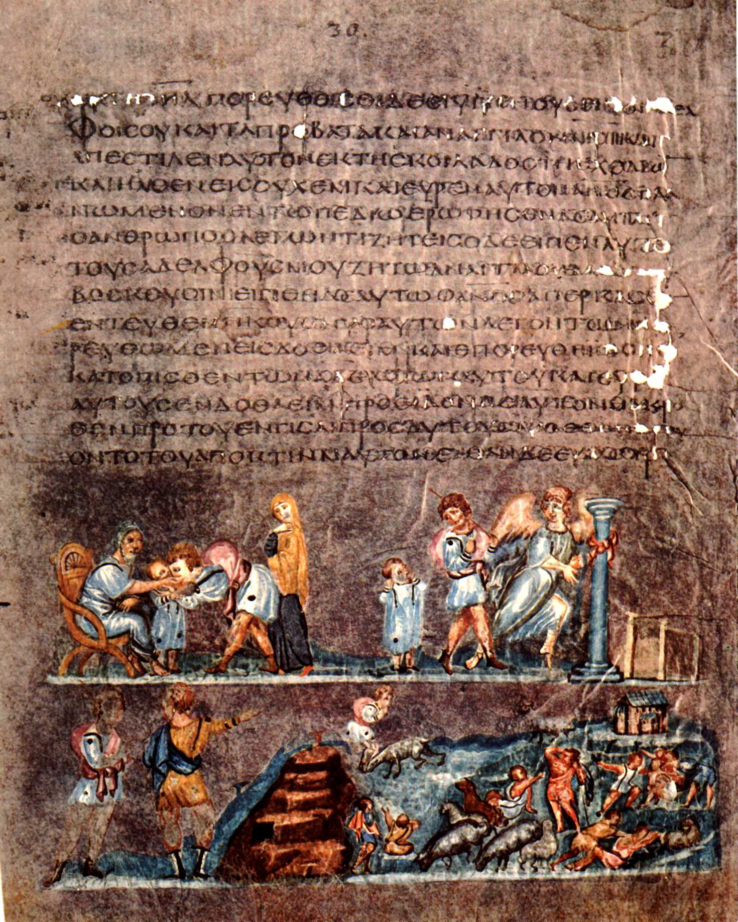 miniatury przedstawiają nie jedno wydarzenie, ale całą sekwencję wydarzeń – narracja kontynuacyjna, wydarzenia czytało się tak jak linijki tekstu - historia Eneasza - wergiliusza - józefa w uwięzieniu - uprowadzenia józefa do egiptu