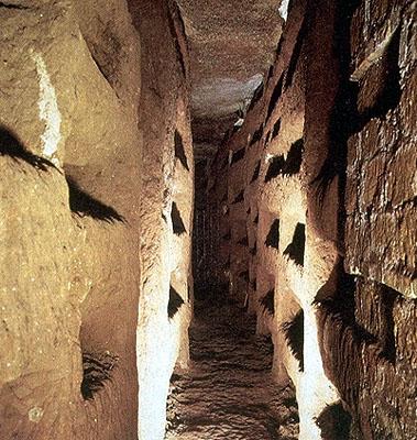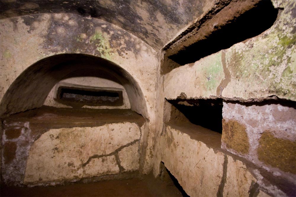 (Były oficjalnym cmentarzem Kościoła w Rzymie w III wieku. Pochowano w nich około pół miliona chrześcijan, w tym dziesiątki męczenników i szesnastu papieży. Nazwa pochodzi od imienia diakona świętego Kaliksta, któremu na początku trzeciego wieku Papież Zefiryn powierzył administrację tego cmentarza. rodzaj grobu spotykany w okresie wczesnego chrześcijaństwa)