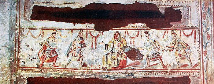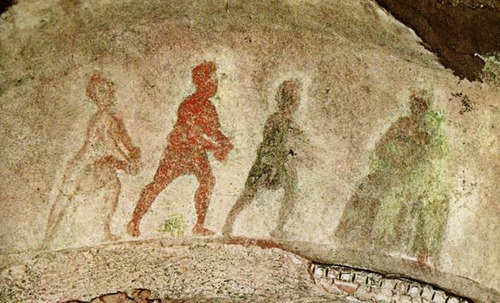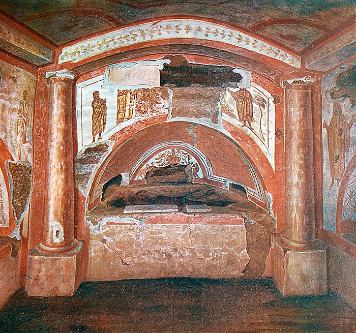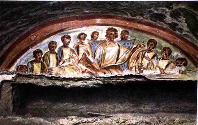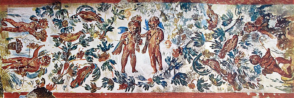 trzej młodzieńcy, św cecylia, orantka, putta bawiące sie girlandami, madonna z dzieciątkiem, Jonasz, chrzest apostołów, samarytanka przy studni