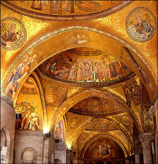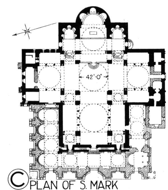 -XI wiek Wenecja długo była pod panowaniem bizantyjskim i jeszcze wiele lat po uzyskaniu suwerenności politycznej i handlowej pozostali artystycznie zależni od Wschodu świątynia ta jest najokazalszą budowlą drugiego złotego wieku bazylika została wzniesiona na planie krzyża greckiego wpisanego w kwadrat, każde ramie krzyża jest uwypuklone poprzez kopułę kopuły tzw. Cebulaste