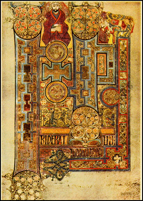 , ok 800 r., Dublin o Święty monogram XPI (Christi), inna nazwa to "chi-ro". Najsłynniejsza strona z Ewangelii wg św. Mateusza