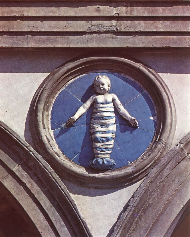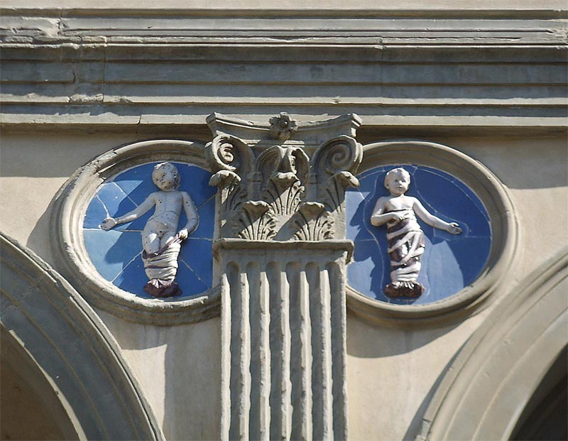 tonda z przedstawieniem niemowląt w przyczółkach arkad Ospedale Degli