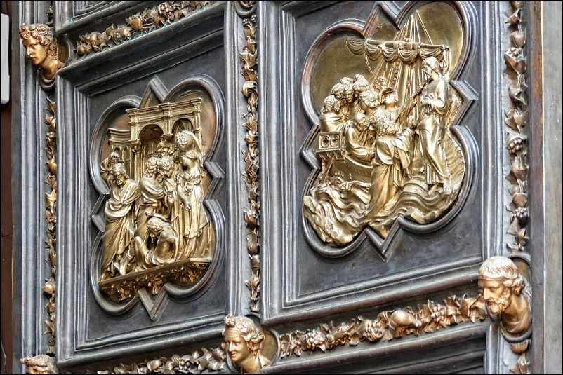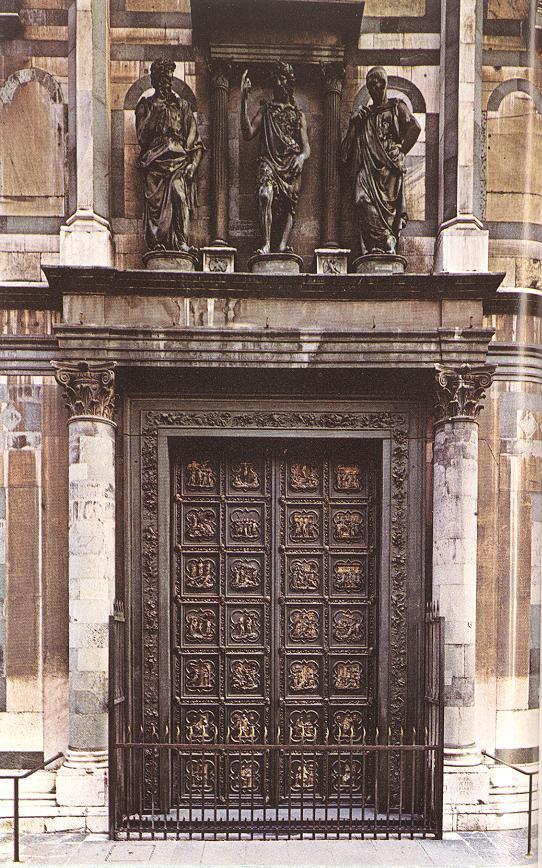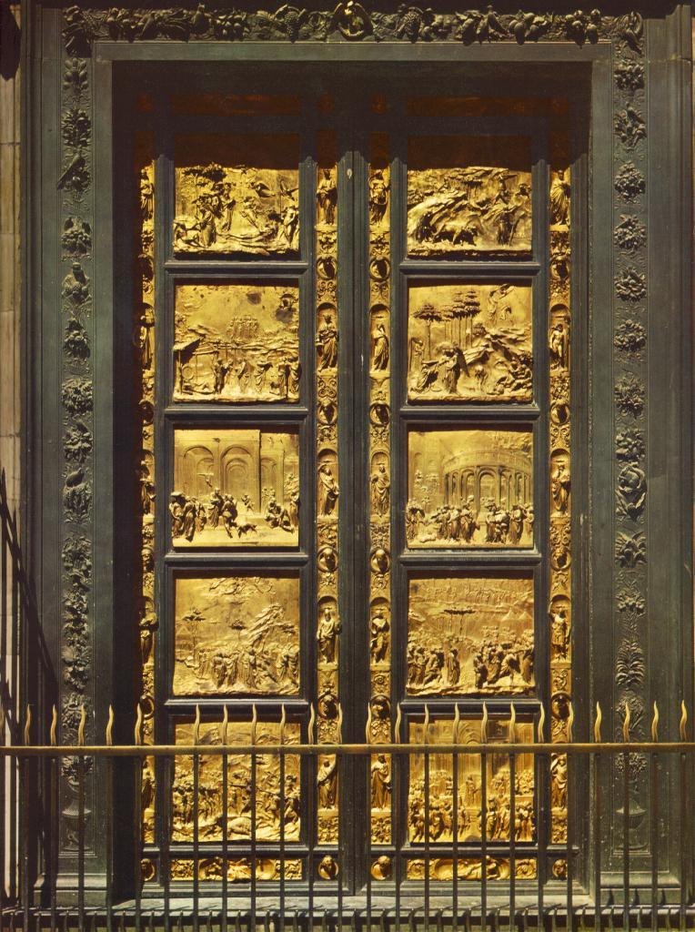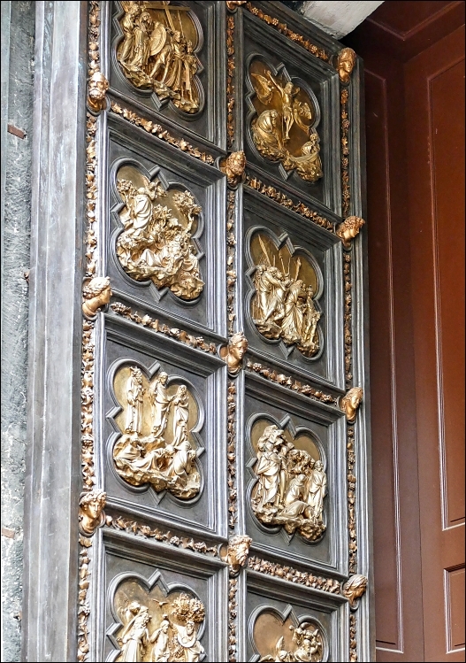 Po północnej stronie zobaczyć można drzwi wykonane na początku XV w. przez Lorenzo Ghibertiego. Zdobią je sceny z Nowego Testamentu, a także postaci Ewangelistów i czterech Doktorów Kościoła. Najsłynniejsze są Drzwi Raju, które znajdują się od wschodu. Zostały wykonane z brązu, a następnie pozłacane. Ich autorem jest Lorenzo Ghiberti. Przedstawiają sceny ze Starego Testamentu oraz postaci biblijne i artystów żyjących w tamtym okresie. Pochodzą z połowy XV w.