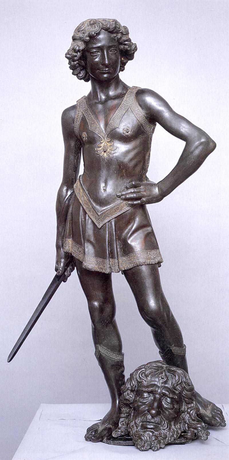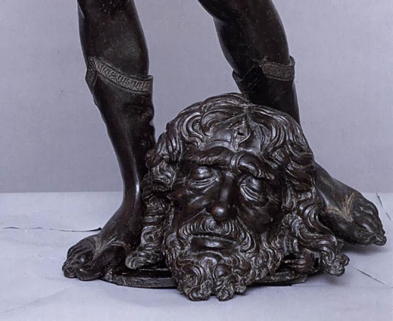 brąz/wzorowany na Donatelli, naturalna z dozą dumy postawa, Dawid po walce z głową Goliata