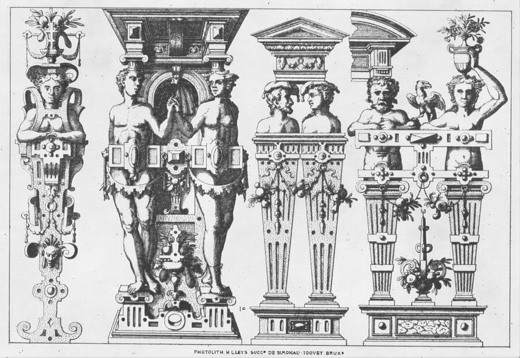 karboszony, boniowanie, rauty, maszkarony, herby, połączenia festonami, przykłady konsoli, motyw okuciowy, zwijany rollwerk, kartusz, ornament małżowinowo chrząstkowy (związane z rośliną - przeplatają sie, przypominają małżowine), arabeska, maureska, groteska (z hellenizmu)