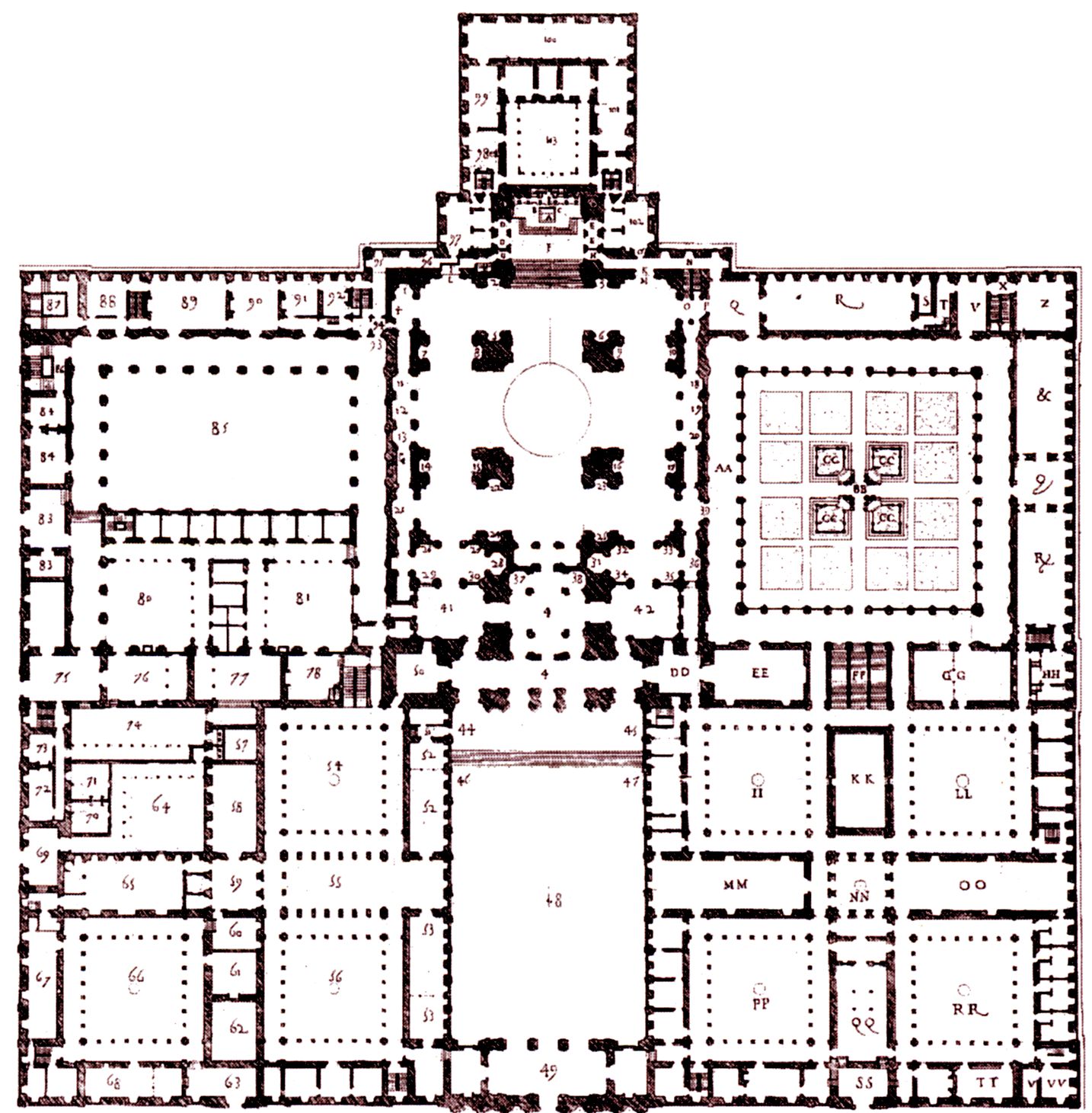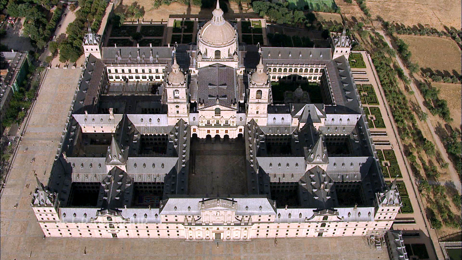 zespół pałacowo-klasztorno-biblioteczny/ 45 kilometrów na północny zachód od Madrytu. Kompleks zbudowano z szarego granitu, w powściągliwym i surowym stylu późnego renesansu.