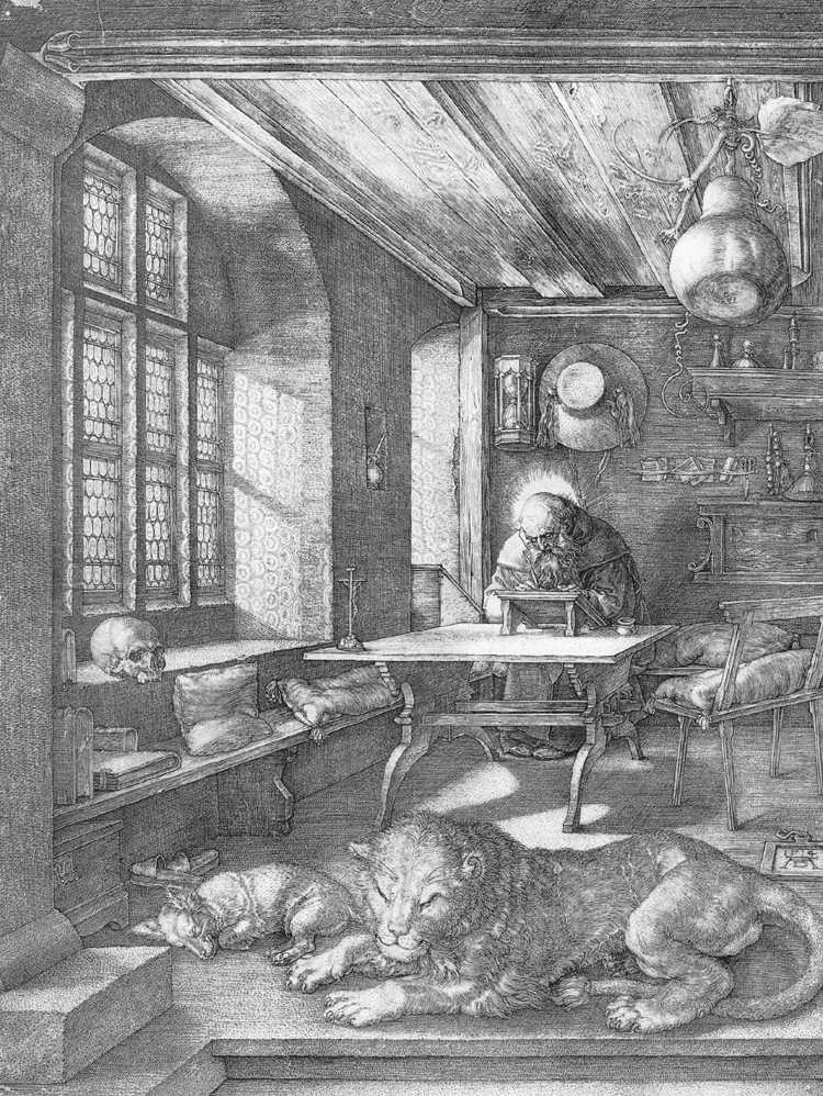 lew = atrybut/ Źródłem treści tych rycin była etyka Erazma z Rotterdamu i in. filozofów niemieckich i niderlandzkich. Wyrażają one poczucie przynależności Dürera do kręgu humanistów