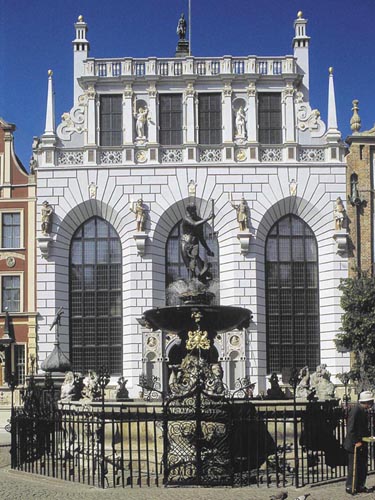 o był jednym z najwspanialszych tego typu obiektów w Europie północnej o dwory Artusa powstawały licznie w całej Europie a szczególnie w miastach hanzeatyckich, jako miejsca spotkań zamożnego patrycjatu, kupców i rzemieślników na wzór legendarnego Okrągłego Stołu rycerzy króla Artura o gdański Dwór Artusa był ważnym ośrodkiem życia towarzyskiego i handlowego Gdańska i najbardziej demokratycznym miejscem w kraju. Bywali tam kasztelanowie, wojewodowie, następcy tronu o w XIV w. budynku obecny kształt zyskał w 1477 r. Fasada przebudowana ozdobiona manierystycznym portalem zdobionym medalionami z portretami królów cechy twórczości: przyswoił sobie formy niderlandzkiego manieryzmu, silnie obecne w jego pierwszych pracach stopniowo słabły one na rzecz cech italianizujących oraz wczesnobarokowych – ornamentyka, rzeźbiarstwo ceglane, ciemnoczerwone lico ścian i na nim kamienne dekoracje redukcja antycznych, masywnych porządków - skromne, płaskie podziały poziome symetrycznie rozłożone ciosy bogato traktował portale i szczyty o b.niespokojnej sylwecie pokryte dekoracją okuciową charakterystyczne faktury ścian okuciowo-rollwerkowe dekoracje szczytów